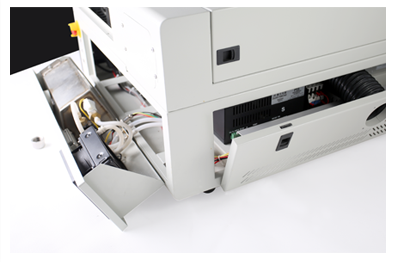 Σχεδιασμένο για τέλεια εξοικονόμηση χώρου και αισθητική στο χώρο εργασίας, το MIRA 9 έχει ενσωματωμένη την υδρόψυξη της πηγής laser, τον αεροσυμπιεστή της κεφαλής και το σύστημα εξαγωγής καυσαερίων, στο κάτω μέρος της μηχανής. Μια compact μηχανή στο χώρο σας.