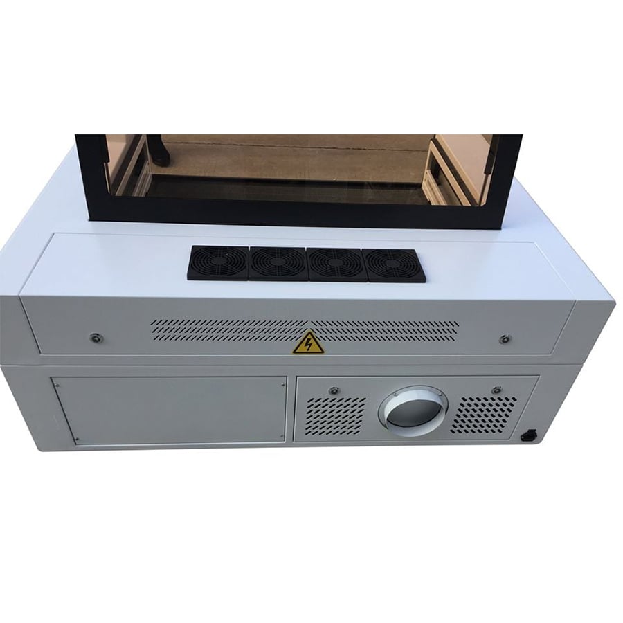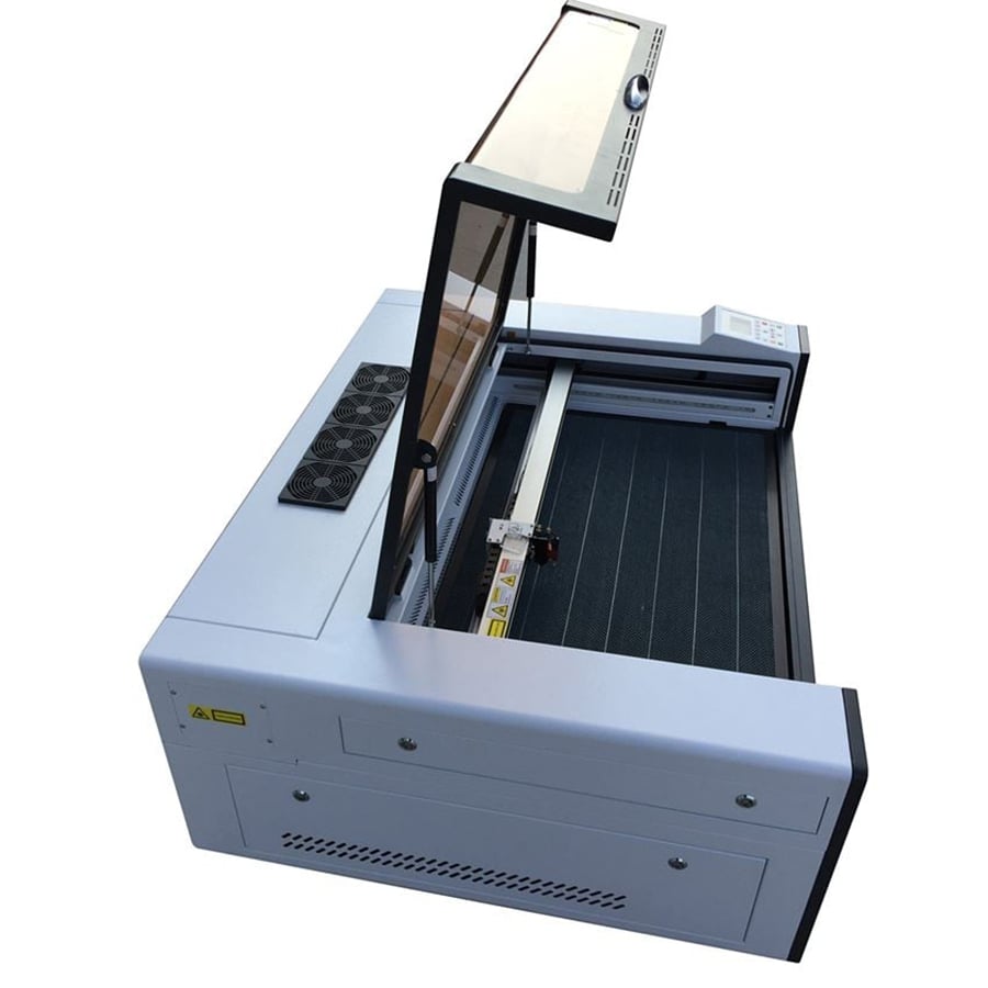 με τραπέζι 90 x 60 εκατοστά και πηγή laser glass CO2 40W/60W/80W ή 100W μπορεί να κόψει plexiglass έως 20mm, MDF/κόντρα πλακέ/ξύλα έως 15mm, χαρτόνι, δέρμα, ύφασμα,PVC κ.α. υλικά (η έκδοση με την πηγή των 100W)